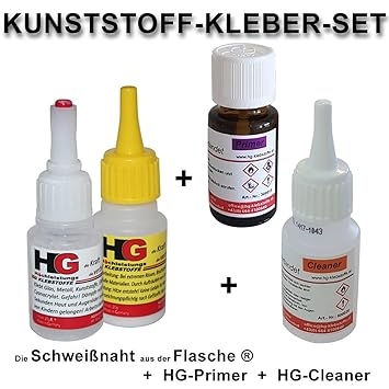 Profiset Kunststoffreperatur mit 5g Industriekleber + 5ml Primer -PE PP SIlikon.