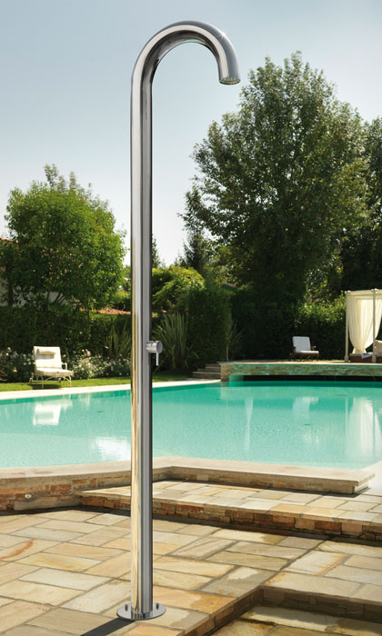 Die Gartenduschei st nicht nur wegen der Hygene vor und nach dem Schwimmen ideal. Unsere exklusiven Gartendusche gliedern sich perfekt in die Garte. Modell Typ Warm- und Kaltwasser und Entnahmehahn.